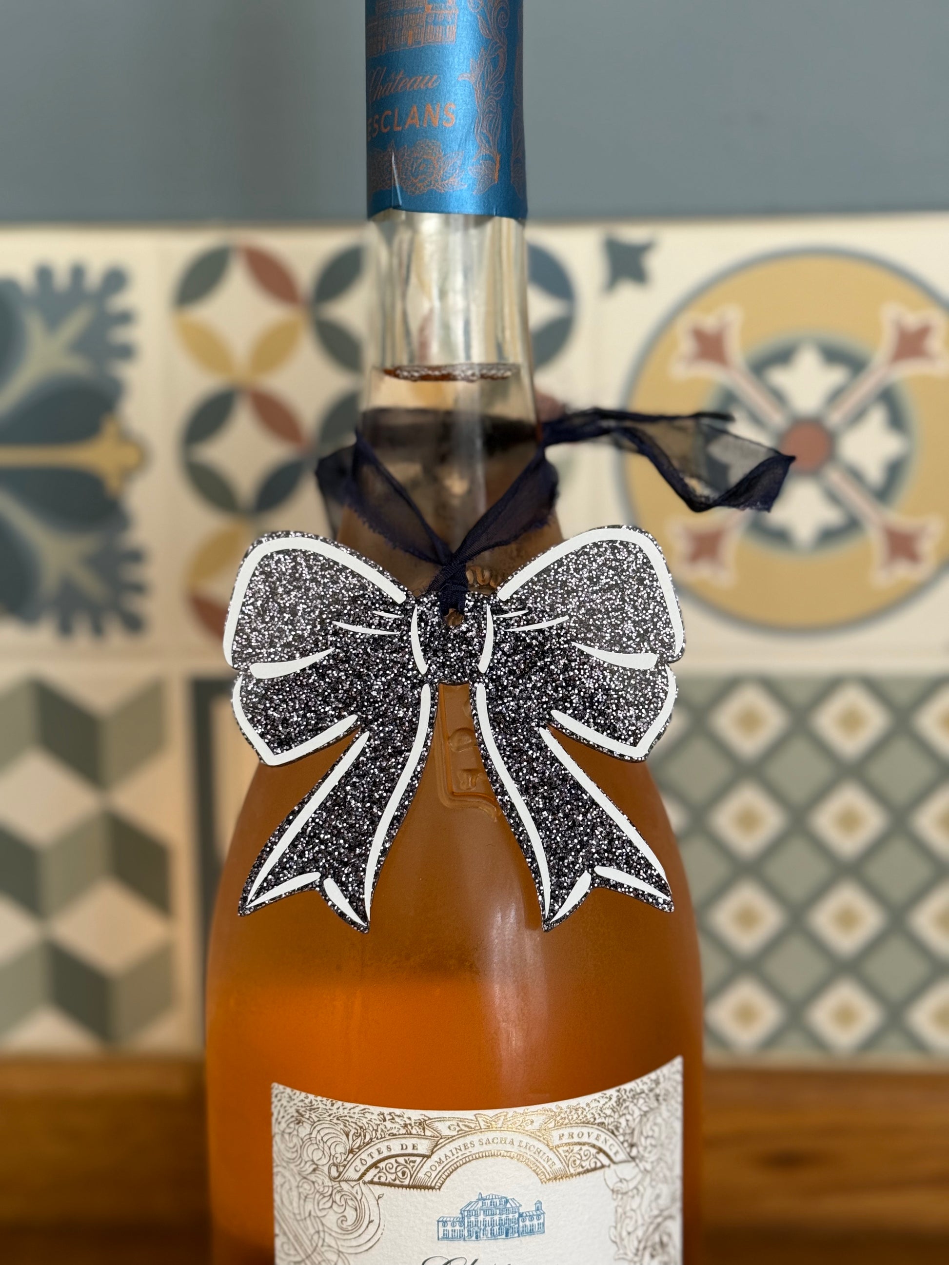Make gifts and decorations sparkle with our acrylic glitter bows! Personalize with limited space, choose from multiple colors, and hang with a ribbon for bottles, gift bags, and tree decorations. Also available as a smaller, cute keyring option.